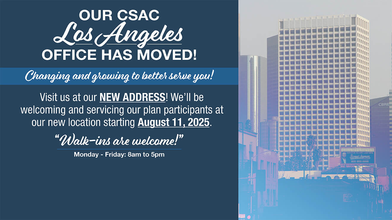 The CSAC Los Angeles office will be closing at noon on Wednesday, December 24th in observance of the holiday and will reopen on Monday, December 29th.